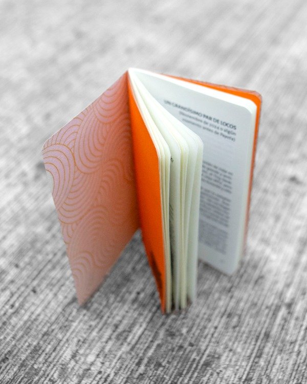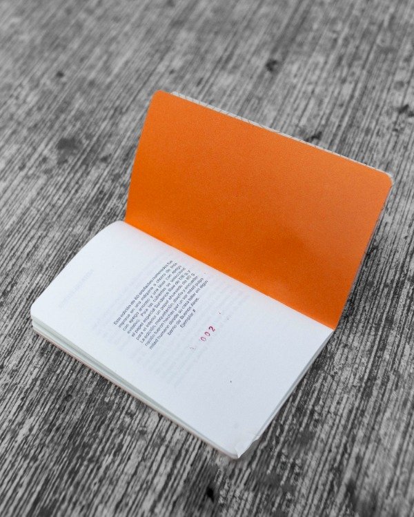 Plaqueta acaballada encuadernada, redondeada y refilada a mano, 40 páginas, interiores en papel ahuesado de 80 gramos impresos en la láser de apego ansioso, guardas en papeles de colores, cubierta en papel especial de 240 gramos impreso en la chorro de tinta de apego evitativo del taller hogareño de Artefacto.